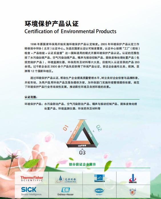 中環(huán)協(xié)(北京)認證中心是中國環(huán)境保護產(chǎn)業(yè)協(xié)會組建 , 經(jīng)原國家環(huán)境保護總局和國家認證認可監(jiān)督管理委員會批準成立的專業(yè)環(huán)境類認證機構(gòu)。