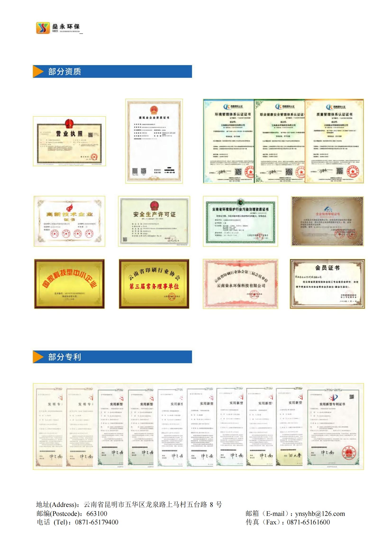 燊永公司堅持“創(chuàng)新、協(xié)作、共贏”的價值觀,以“專業(yè)、專心、專注”為服務(wù)理念,以“求實、求是、求精”為質(zhì)量宗旨,為客戶提供優(yōu)質(zhì)、高效、貼心的服務(wù)。公司獲得國家專業(yè)部門頒發(fā)的《環(huán)境工程專業(yè)承包三級》資質(zhì)、《污染治理乙級》資質(zhì)、《企業(yè)信用等級A級》證書、《云南省科技型中小企業(yè)》認定證書、《ISO9001/GBT50430質(zhì)量管理體系》證書、《ISO14001環(huán)境管理體系》證書、《ISO45001職業(yè)健康安全管理體系》證書等多項榮譽和多項的專利技術(shù)。