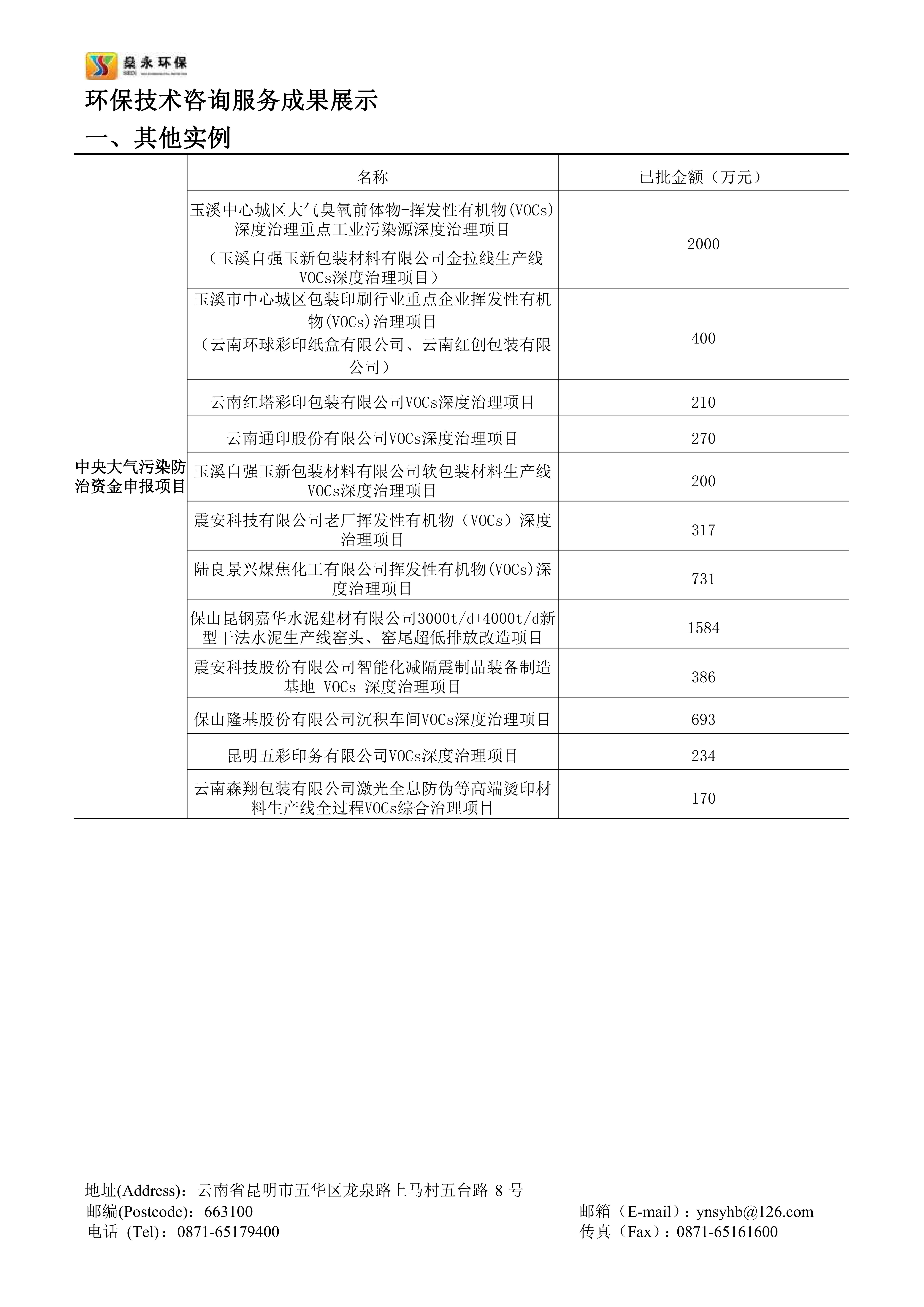 截止202310月,公司幫助云南省多個(gè)行業(yè)企業(yè)成功申報(bào)的中央大氣污染防治資金已入庫(kù)項(xiàng)目共計(jì)20余個(gè),申報(bào)項(xiàng)目已獲批總資金近一億余元。公司承接的云南省內(nèi)中央大氣污染防治資金申報(bào)項(xiàng)目申報(bào)成功率高,成效顯著,服務(wù)細(xì)致高效,在云南省中央大氣污染防治資金申報(bào)領(lǐng)域具有豐富的經(jīng)驗(yàn)。